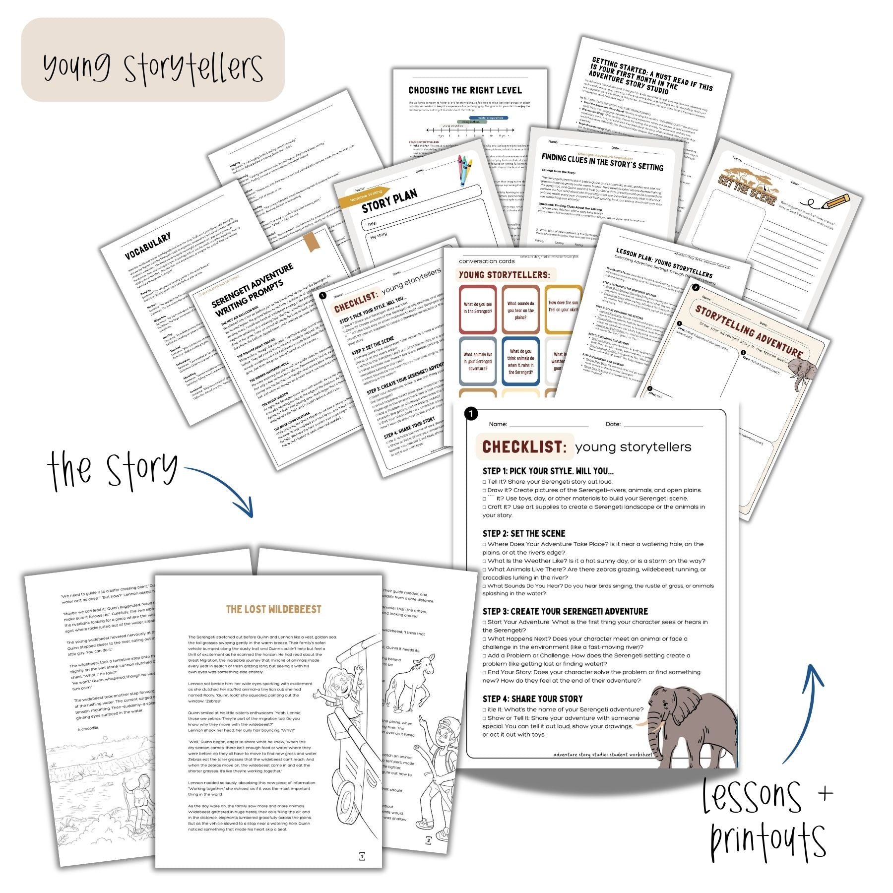 This month in the Adventure Story Studio, Quinn and Lennon take your young writer on an unforgettable journey through the Serengeti! 🌎 As they follow the thrilling migration of wildebeests, their adventure unfolds with challenges, including guiding a young calf across a perilous river. 🐾💧